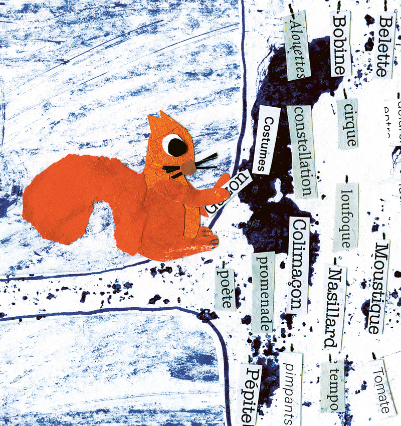 Des mots tombent du journal d’un passant. C’est un inconnu sans attache apparente, pourtant c’est grâce à lui que l’écureuil forme sa collection de mots et s’émerveille chaque jour. Deux corbeaux proposent des interprétations alternatives des mots égarés et invitent le lecteur à détourner l’ordinaire.